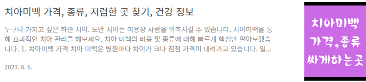 | 레이저 제모, 부위별 제모, 영구 제모 가격 알아보기 (0) | 2023.08.08 |
